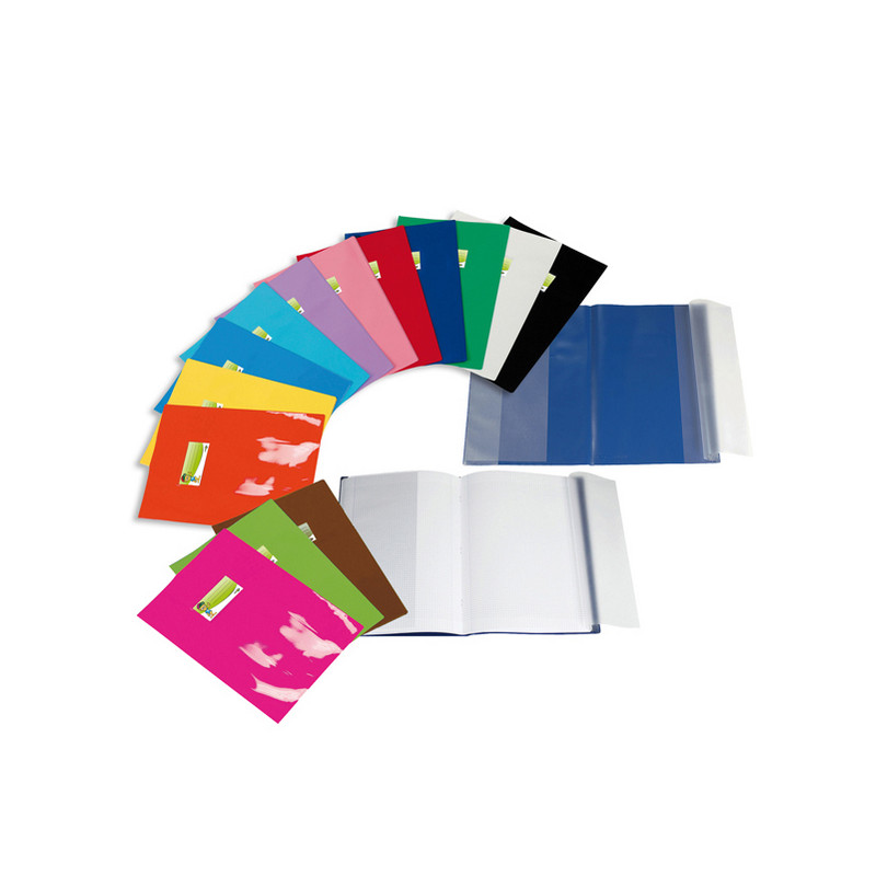 Copri maxi in morbido PVC laccato e colorato. Dotati di due tasche laterali salva-angoli per l'inserimento del quadernone e di due alette trasparenti utili come segna pagina. Finestrino trasparente saldato con etichetta inserita.