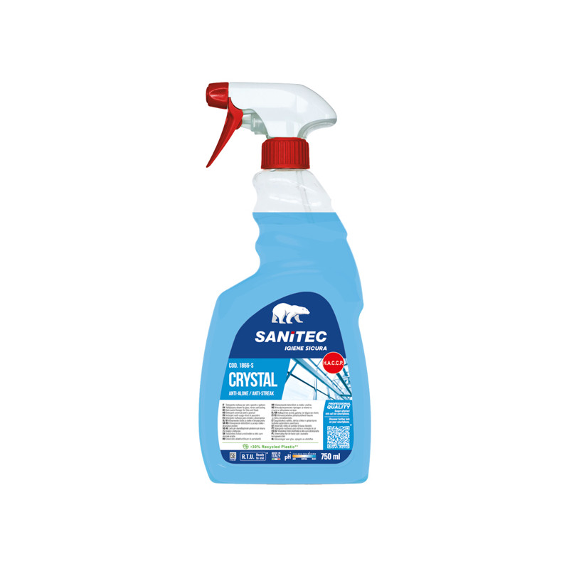 Detergente multiuso per vetri, specchi e spolvero e superfici cromate. Lascia le superfici pulite e brillanti senza aloni e l'ambiente gradevolmente profumato. MODO D’USO E DOSAGGIO: Prodotto pronto all’uso. Erogare il prodotto direttamente sulla superficie da pulire e strofinare fino a completa asciugatura. Aspetto: liquido trasparente blu - pH: 11,0 +/- 0,5. Seguendo le modalità d’uso consigliate, è utilizzabile sulla maggior parte dei materiali comunemente presenti nell’industria alimentare (HACCP). Evitare comunque di spruzzarlo su policarbonato ed altri materiali plastici suscettibili di stress cracking. CERTIFICAZIONI / CONFORMITA’: I tensioattivi contenuti sono biodegradabili secondo i criteri definiti dalla Direttiva Europea 648/2004/CE e successive modifiche.