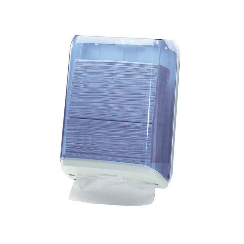 Dispenser portaasciugamani piegati a "C" a "Z" a "V". Capacità 400 fogli piegati a Z - 600 fogli piegati a V . Dimensioni H37,5xP13,7xL28cm. Profondità interna 13cm. Colore trasparente/bianco.