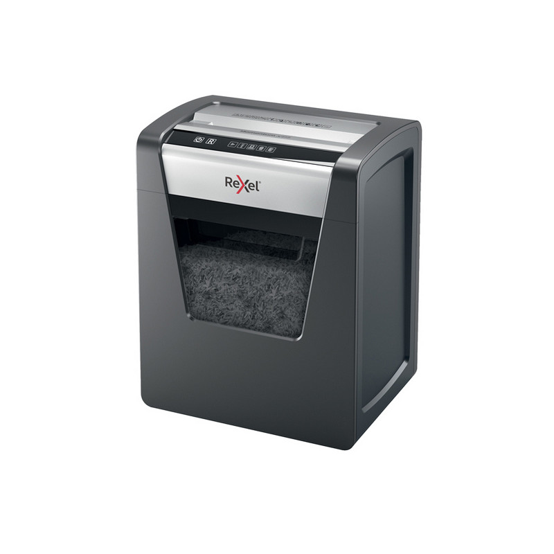 Il potere di distruggere di più! Rexel momentum X415 distrugge fino a 15 fogli per volta con un ciclo di lavoro continuo di 120 minuti. Livello di sicurezza P4 con taglio a frammenti da 4x40 mm. Silenzioso, con pulsanti di controllo a sfioramento semplici e intuitivi per un facile utilizzo e una generosa capacità del cestino da 23 litri.
