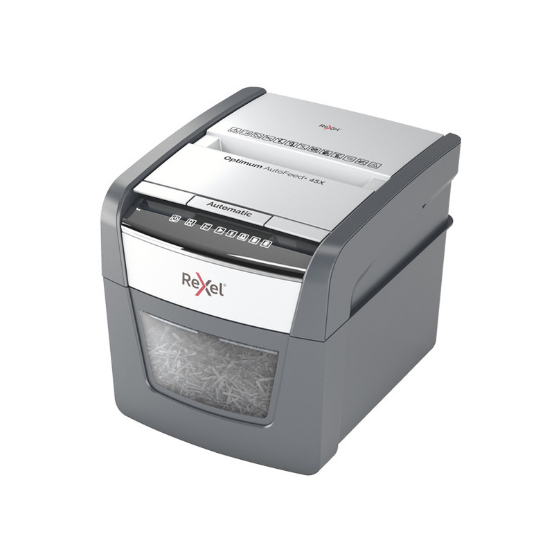 Distrugge fino a 45 fogli di carta A4 (80 gr/mq) con alimentazione automatica e un massimo di 6 fogli con alimentazione manuale.