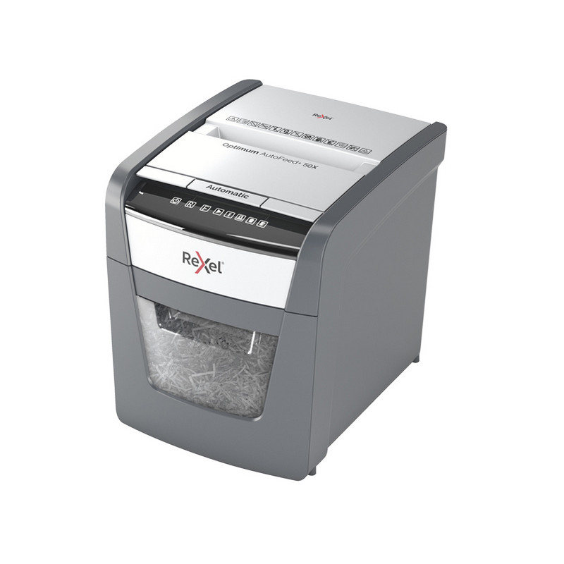 Distrugge fino a 50 fogli di carta A4 (80 gr/mq) con alimentazione automatica e un massimo di 6 fogli con alimentazione manuale.