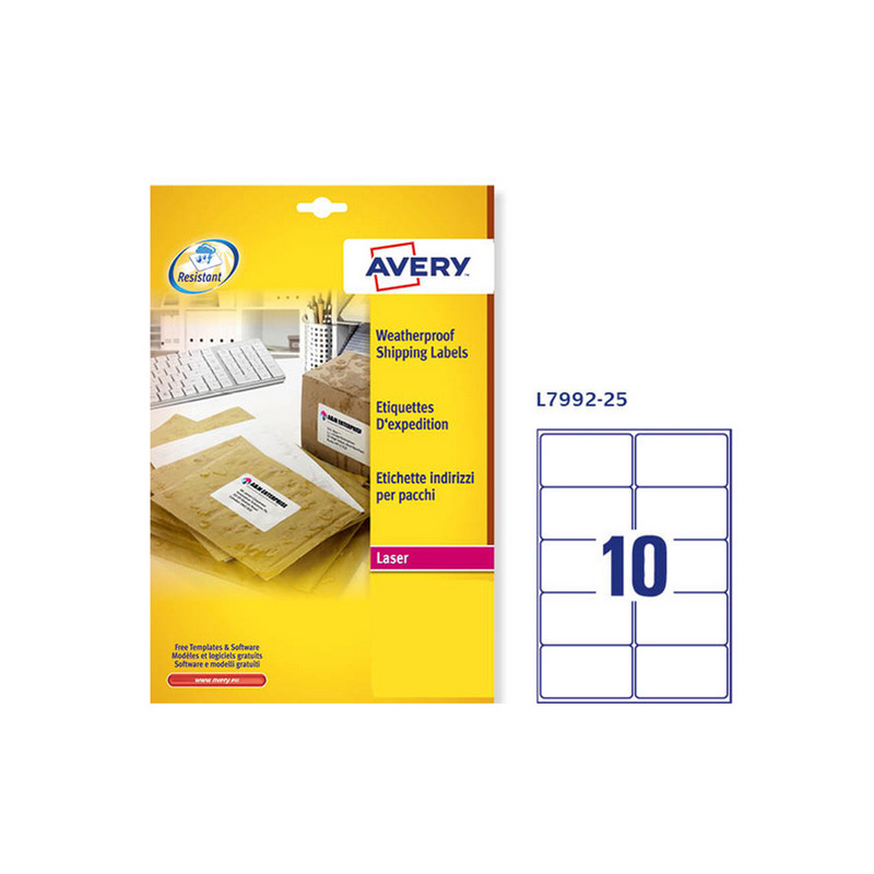 Etichette in poliestere bianco resistono all'acqua, allo sporco, agli strappi e ai raggi UV, alle temperature da -20°C a +80°C. Possono essere applicate su metallo, vetro, plastica e legno. Ideali per uso esterno. Confezione da 20fogli in A4. Per stampanti laser.