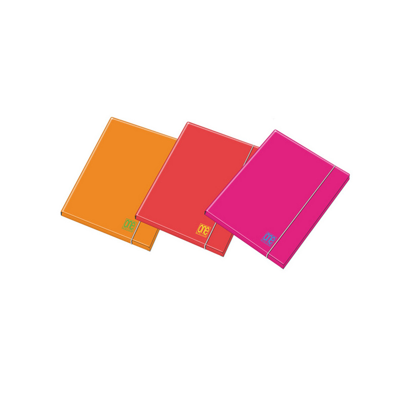 Cartella con elastico tubolare sul lato lungo. Tre alette. Dimensioni 26x35cm. Dorso 12mm. In cartone pesante monocolore lucido in colori assortiti fluo.