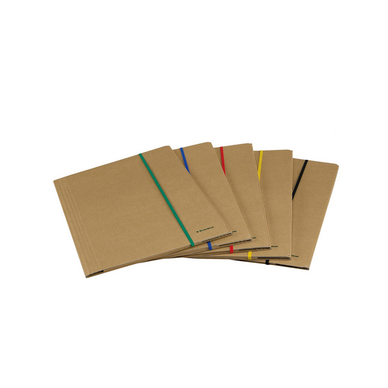 Cartellina a 3 lembi STARLINE in robusto cartone ecologico riciclato di colore avana da 0,8mm. Chiusura con elastico piatto colorato da 5mm. Cartellina cordonata con capacità massima fino a 4cm. Formato 25x35cm.