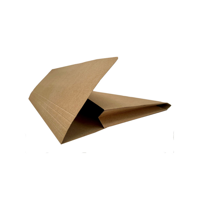 Cartellina a busta Starline realizzata in cartoncino Kraft 225gr/mq certificato FSC color avana. Pratico soffietto sui due lati conferisce alla cartellina una capienza variabile. Zona scrivibile realizzata con 5 righe impresse a secco sull'aletta. Formato chiuso 34 x 26cm. Confezione termo da 25 cartelline.
