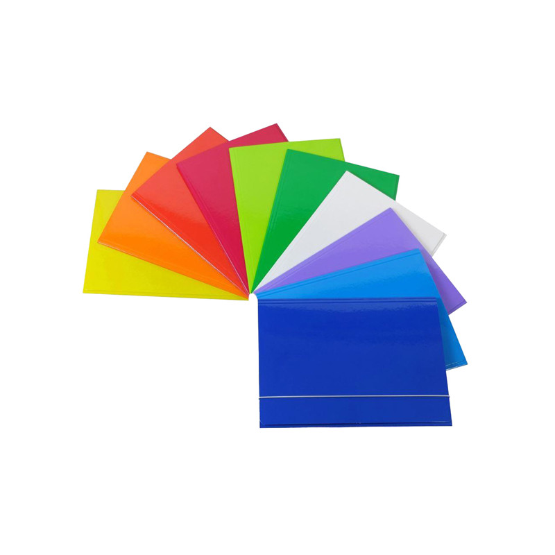 Cartella a 3 lembi Starline in cartone plastificato dai colori brillanti. Dorso cordonato. Chiusura con elastico di colore grigio chiaro. Struttura in cartoncino 600g/m² rivestito da una pellicola lucida in PP. Robusta e resistente ideale per conservare, classificare e proteggere documenti in formato A4.