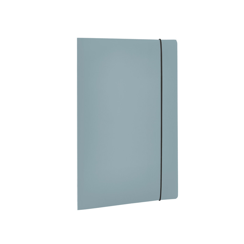 Cartellina a 3 lembi in polipropilene. Contenuto minimo di materiale riciclato post consumo pari al 30%. Confezionamento e imballo privi di plastica. Speaker label in carta 100% riciclata. Prodotto 100% riciclabile. Chiusura con elastico.