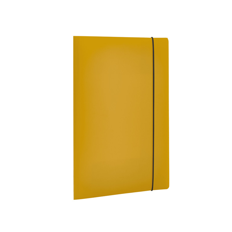 Cartellina a 3 lembi in polipropilene. Contenuto minimo di materiale riciclato post consumo pari al 30%. Confezionamento e imballo privi di plastica. Speaker label in carta 100% riciclata. Prodotto 100% riciclabile. Chiusura con elastico.