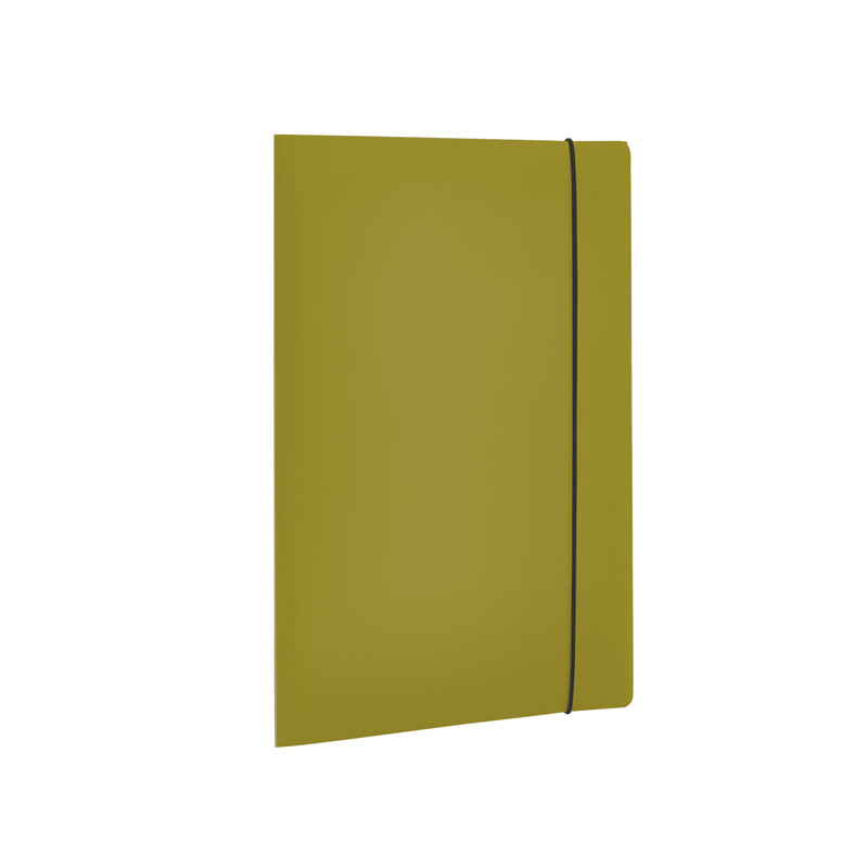 Cartellina a 3 lembi in polipropilene. Contenuto minimo di materiale riciclato post consumo pari al 30%. Confezionamento e imballo privi di plastica. Speaker label in carta 100% riciclata. Prodotto 100% riciclabile. Chiusura con elastico.