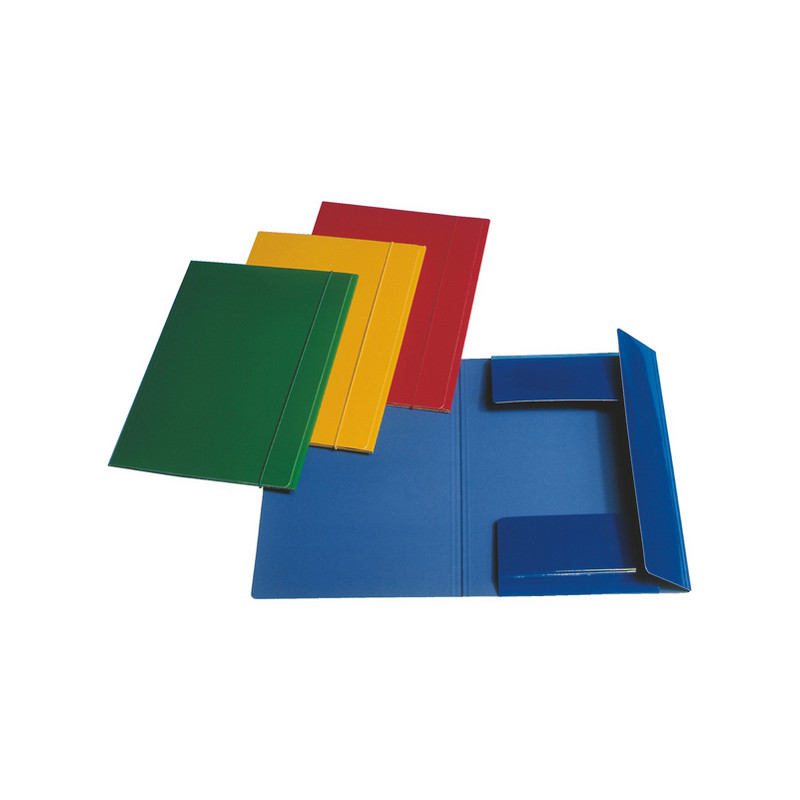 Cartelle 3 lembi con elastico realizzate in cartoncino 550gr stampato e plastificato in colori brillanti. Chiusura con elastico tondo dello stesso colore della cartella. Formato utile: 25x35cm. Confezione da 5 cartelline.