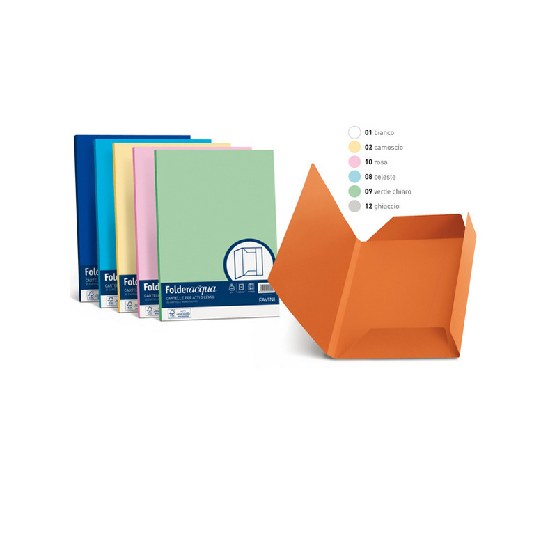 Cartellina 3 lembi Acqua - 200 gr - A4 - cartoncino bristol - ghiaccio - Favini - conf. 25 pezzi