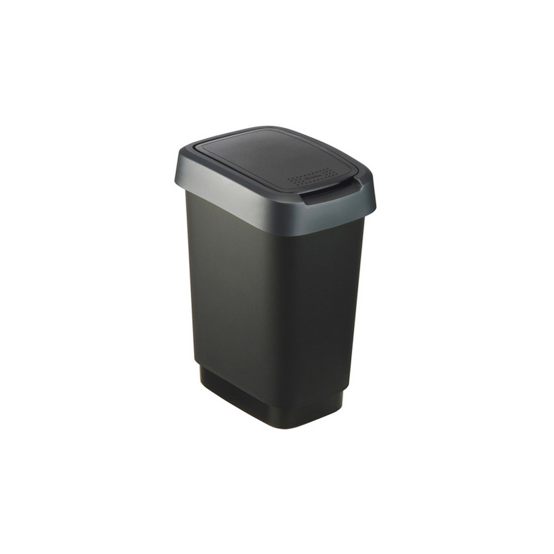 Pattumiera in PPL con doppia apertura: tradizionale su perno posteriore o basculante. Portasacchetti nascosto. Disponibili in 3 colori che permettono la differenziazione della raccolta. Pattumiera 25Lt - 33,3x25,2x47,6cm. Prodotto in Svizzera.