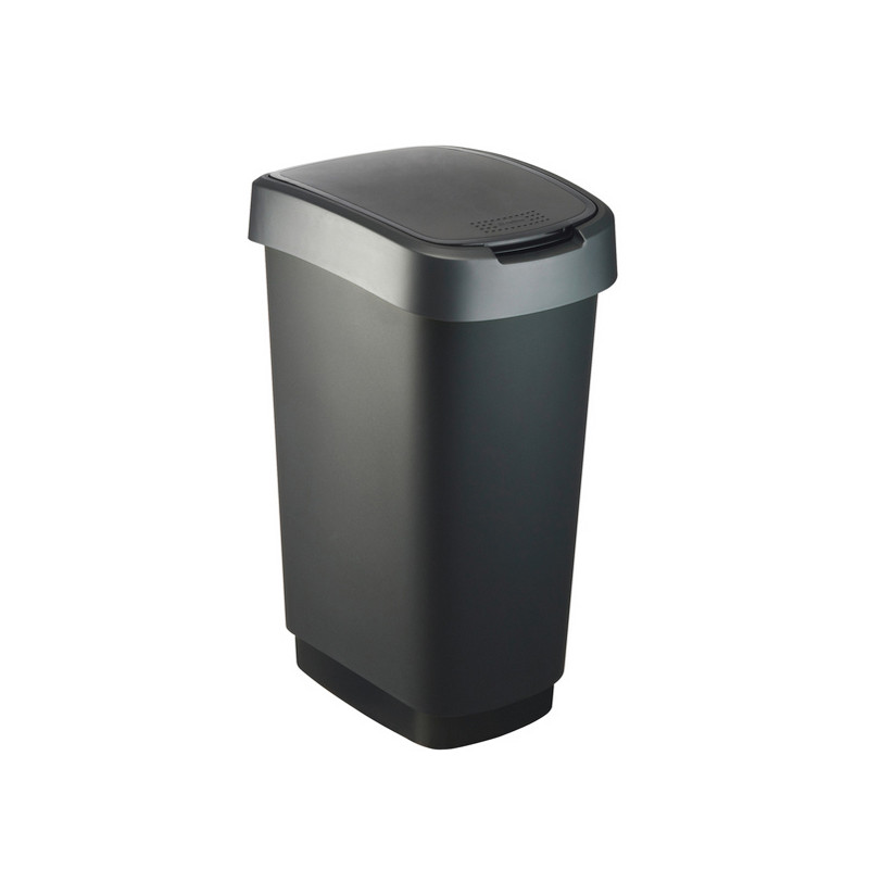 Pattumiera in PPL con doppia apertura: tradizionale su perno posteriore o basculante. Portasacchetti nascosto. Disponibili in 3 colori che permettono la differenziazione della raccolta. Pattumiera 50Lt - 40,1x29,1x60,2cm. Prodotto in Svizzera.