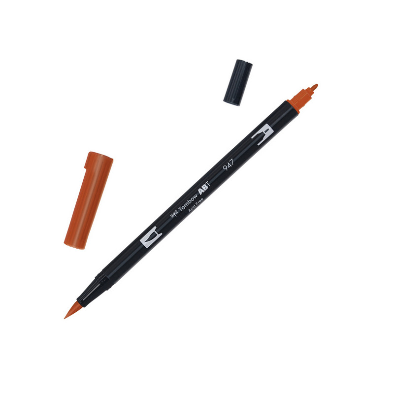 Marker Dual Brush Tombow. Due punte in fibra: sottile per tracciare linee precise, pennello per colorare ampi spazi. Inchiostro a base d'acqua, atossico, inodore, acid free. I colori non sbavano, possono essere miscelati e acquarellati tra di loro per crearne di nuovi.
