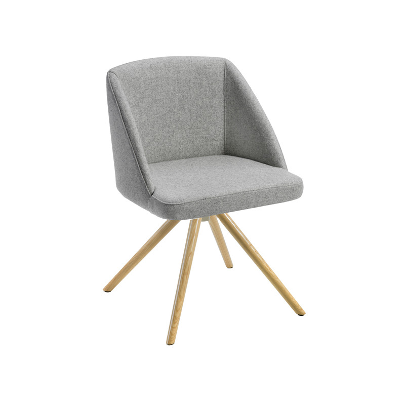 Poltroncina su 4 gambe in legno. Rivestimento in tessuto "FASHION - Lana melange" 100% pura lana vergine e certificazioni di infiammabilità 1IM UNI 9175. Alt. tot: 72cm; Prof.tot: 54cm; Alt.schienale: 35cm; Largh.schienale: 43cm; Largh. sedile: 50cm; Prof.sedile: 42cm; Alt.sedile: 47cm.