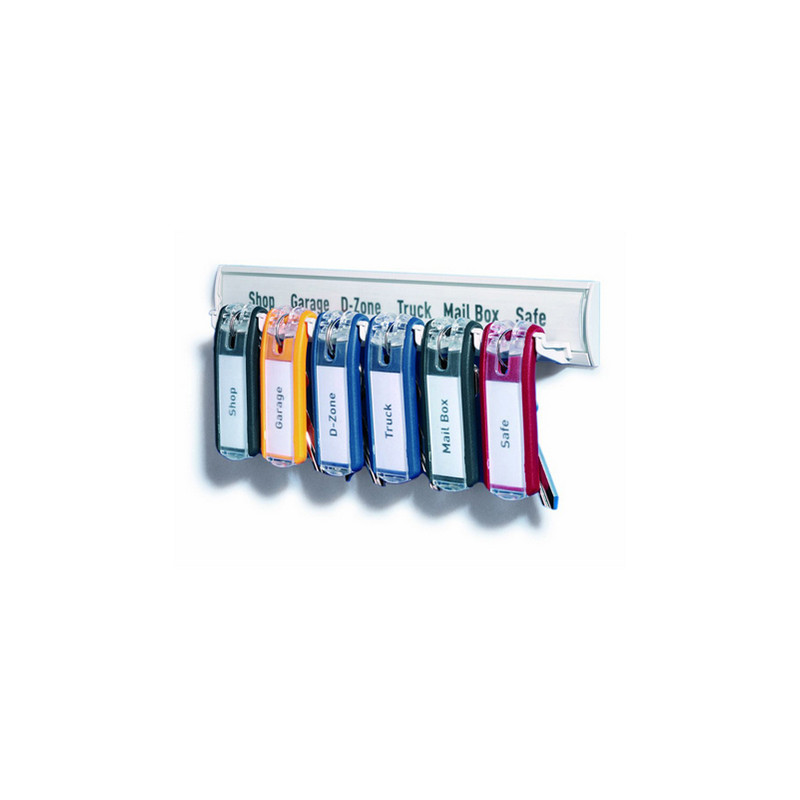 Portachiave innovativo che rivoluziona l'organizzazione della cassette portachiavi KEY BOX. L'esclusivo design è studiato per mostrare l'etichetta sempre in posizione frontale mantenendo nascosta la chiave e assicurandone l'immediata identificazione. L'inserimento dell'etichetta è facilitato dalla pratica apertura a scatto. Template per la personalizzazione degli inserti sono scaricabili gratuitamente dal sito www.durable.it. Confezione da 6 pezzi.Dimensioni singolo portachiave: 6,8x2,4x spessore 1,5cm.