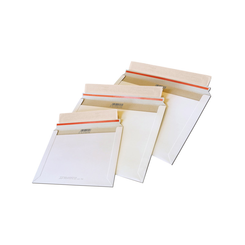 Sacchetti prodotte in robusto cartone teso bianco da 450gr/mq, dotate di una chiusura adesiva tenace e di un sistema di apertura facilitata.