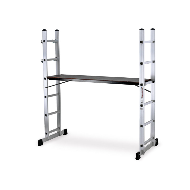 Trabattello in alluminio Everest a 6 gradini. Trasformabile in doppia scala o scala allungabile. Misure a Trabattello 40x160xH168cm. Consigliata per uso domestico e bricolage. Prodotto testato da SGS e conforme alla normativa Europea UNI EN 131. Portata massima: 120kg.