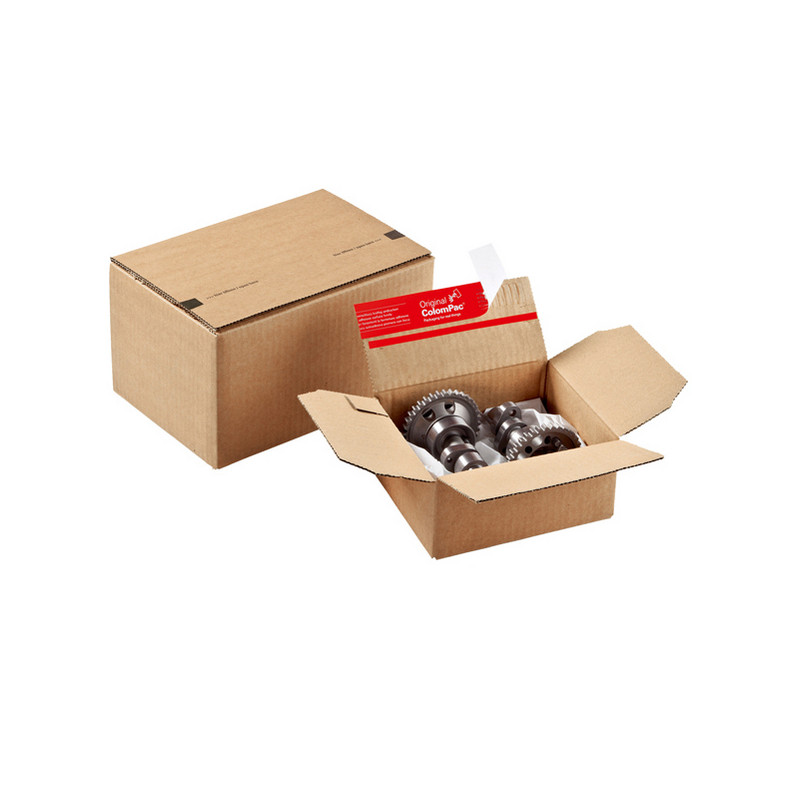 Scatola in cartone Colompac brown per spedire in sicurezza ricambi, premi e regali, prodotti farmaceutici e cosmetici, giocattoli, ecc. In robusto cartone ondulato. Grazie al pratico sistema pop-up la scatola si monta in modo facile e veloce. Misure interne 230x160x50mm. Misure esterne 235x170x60mm. Peso 85gr.