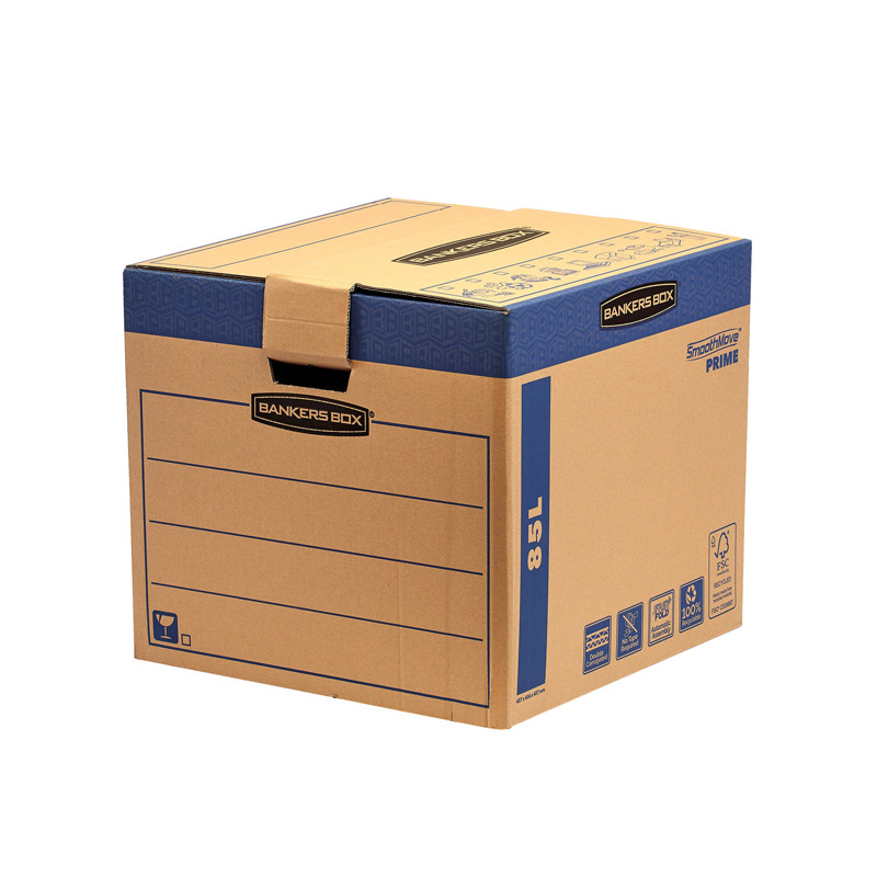 Scatola per traslochi dimensione media. Estrema robustezza grazie al cartone doppio strato. Fori per il sollevamento con maniglia rinforzata. Non necessitano di nastro adesivo per la chiusura. Assemblaggio veloce e semplice grazie al sistema automontante FasfFold. Stampato con inchiostri a base d’acqua. Colle prive di solventi. Consigliata per: oggetti di cucina, libri, soprammobili, album fotografici, CD/DVD. Dimensioni esterne (cm) 41,2 x 48 x 47. Formato utile (cm) 40,6 x 45,7 x 45,7 Dimensioni confezione (cm) 93,4 x 70 x 1,7 (stesa e smontata) Peso confezione gr 1330