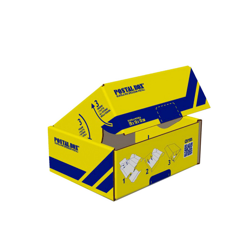 Scatola per spedizione postale di facile assemblaggio. Cartone esterno patinato. Comprende: busta trasparente portadocumenti (POLYADEX), etichetta adesiva MITTENTE/DESTINATARIO, sigilli antieffrazioni con rilascio scritta VOID.