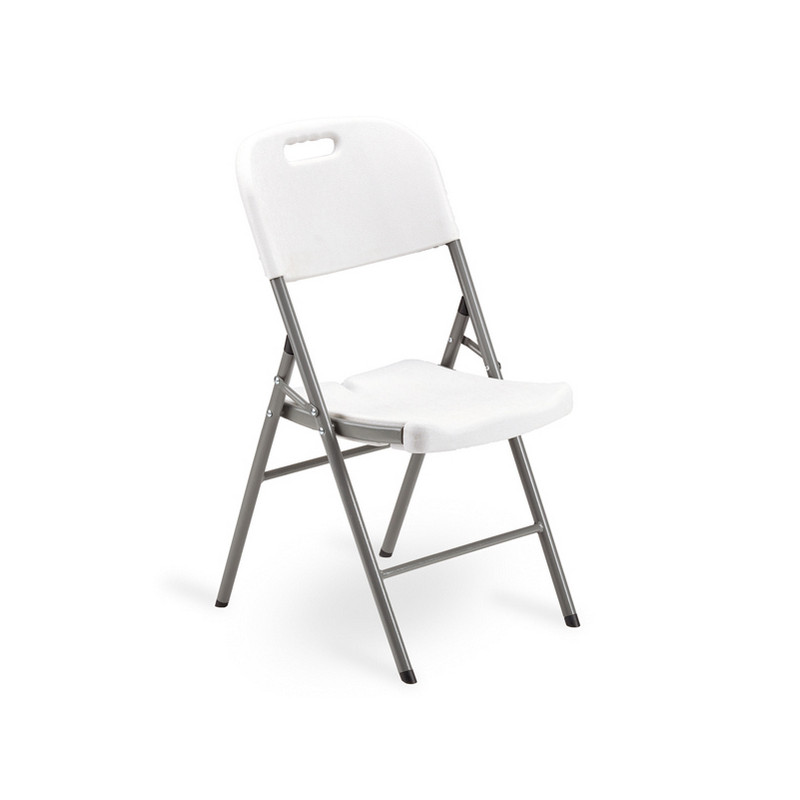 Sedia HORECA pieghevole di colore bianco. Struttura in acciaio verniciato con vernici epossidiche color grigio e top in HDPE di colore bianco pieghevole. Dimensioni: H88 x P50 x L45cm - 5kg.Articolo destinato ad esclusivo uso domestico. Non adatto ad uso pubblico.
