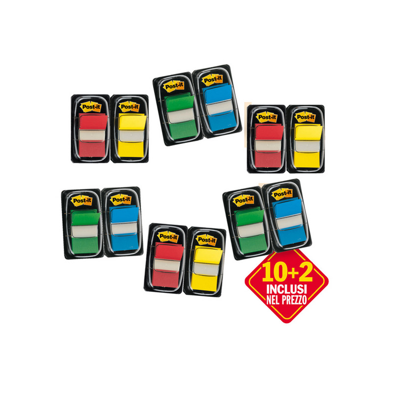 >Cancelleria>Foglietti riposizionabili>Segnapagina Post-it Index Medium - 680 - 4 colori classici - Post-it - Value pack 10+2 (dispenser da 50 segnapagina ciascuno)
