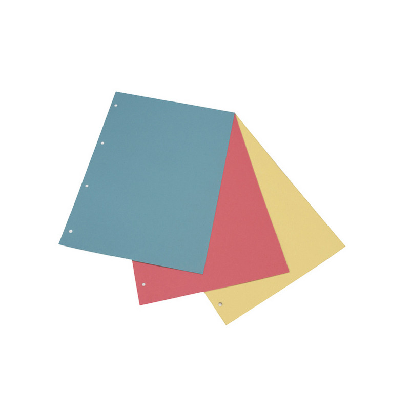 Separatori in cartoncino Manilla da 200 gr di colore giallo. Foratura normalizzata a passo 8 cm (4 fori). Formato: 22x30 cm. Materiale 100% riciclato (certificazioni FSC e Blue Angel).