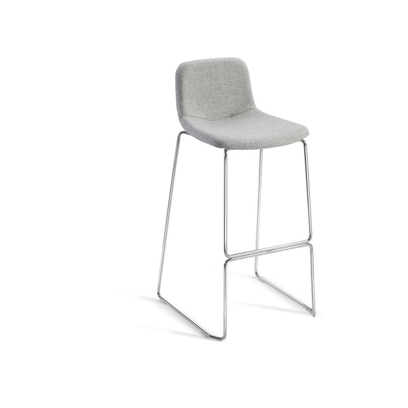 Poltroncina su slitta in acciaio cromato. Rivestimento seduta in tessuto "SUPER - King L" 100% TREVIRA e reazione al fuoco classe 1. Alt. tot: 95cm; Prof.tot: 50cm; Alt.schienale: 21cm; Largh.schienale: 48cm; Largh.sedile: 48cm; Prof.sedile: 42cm; Alt.sedile: 74cm.