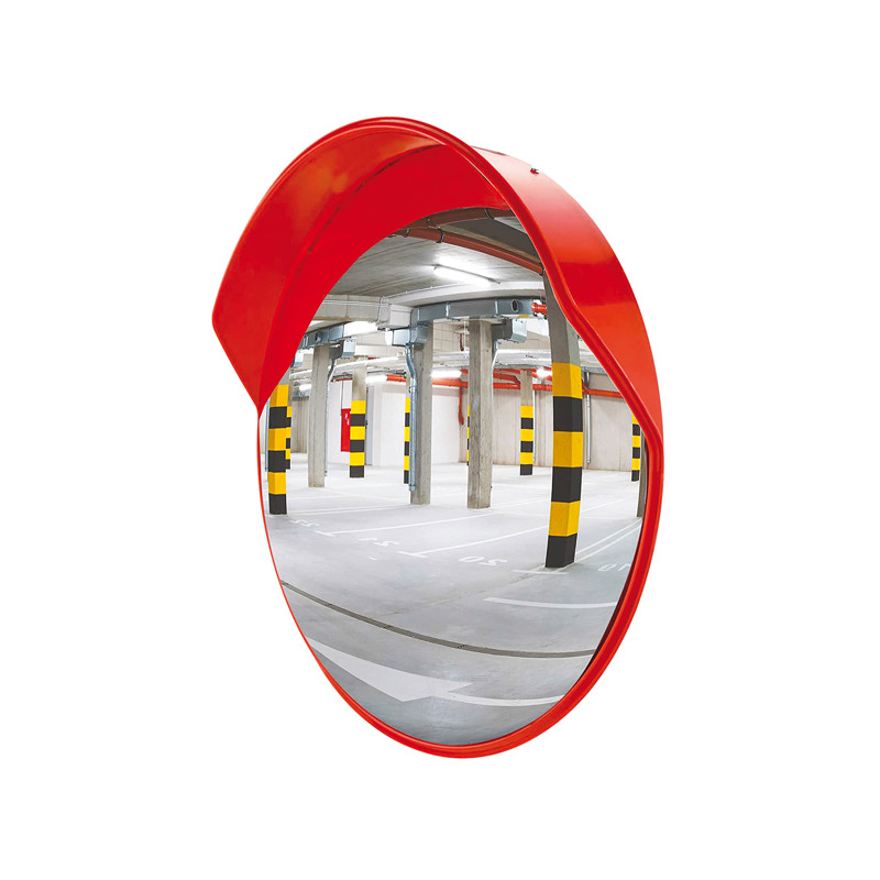 Specchio parabolico in metacrilato, con montatura e visiera in polipropilene colore rosso, guarnizioni in PVC nero. Completi di attacco per applicazione a palo Ø60mm o alla staffa a muro, orientabili in tutti i sensi. Visibilità a 90°.