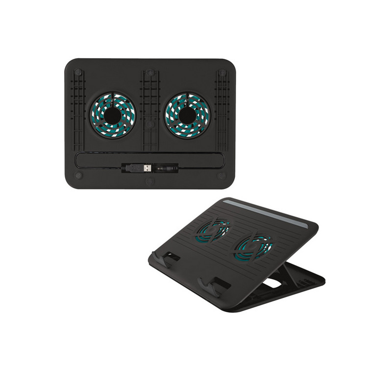 Supporto per notebook dotato di due silenziose ventole di raffreddamento incorporate, per una confortevole digitazione all'inclinazione desiderata e una protezione dal surriscaldamento. Posizionamento impostabile su 8 livelli per sollevare, abbassare o inclinare lo schermo e la tastiera del notebook per un migliore comfort operativo. Migliora l'efficienza di raffreddamento del notebook e protegge i mobili e le gambe dall'esposizione alle alte temperature dovute al suo utilizzo. Adatto a qualsiasi notebook, netbook o MacBook dotato di schermo fino a 16”. Ventole alimentate tramite USB: non è necessario alcun collegamento alla presa a muro. Gommini protettivi per eliminare qualsiasi sdrucciolamento o pericolo di graffiature.