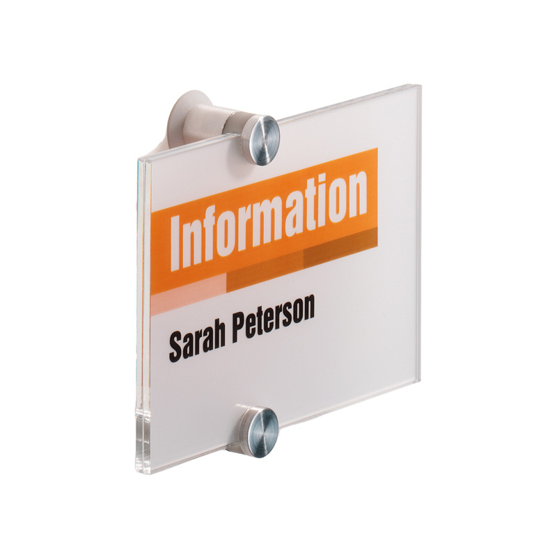 Targhe fuori porta in abs di color grafite con angoli arrotondati. Apertura e chiusura a scatto, il pannello frontale trasparente può essere aperto completamente per facilitare l'introduzione e rimozione del cartoncino inserto. Fissaggio a parete, kit di fissaggio con viti e istruzioni di montaggio incluso nella confezione. Gli inserti in cartoncino possono essere personalizzati e stampati on-line tramite il software gratuito duraprint.