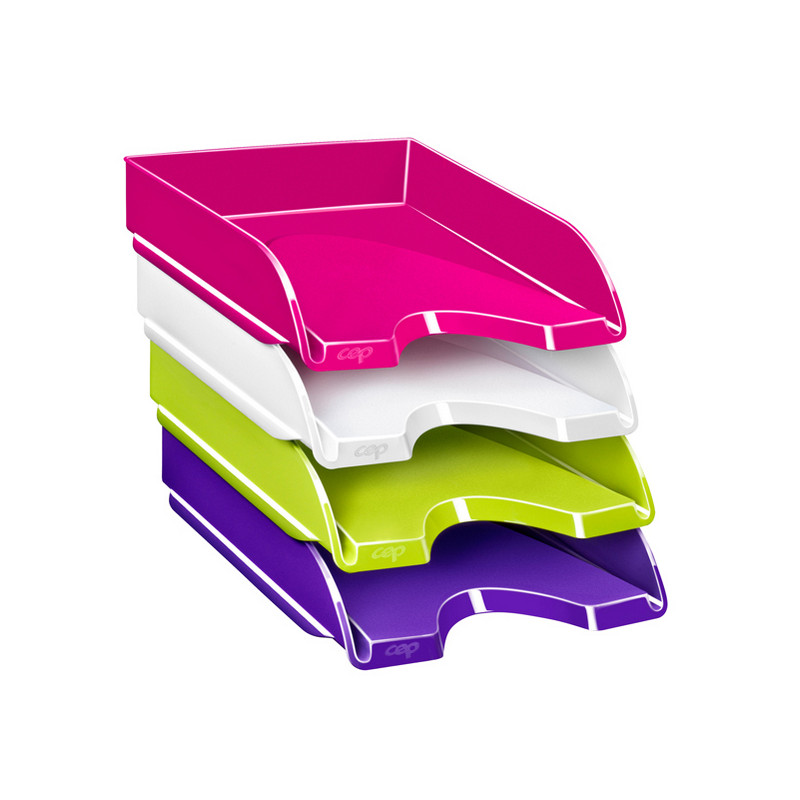 Vaschette CepPro Gloss. Design originale finemente realizzato in colori vivaci dai contrasti lucido/opaco. In polistirene antiurto 100% riciclabile extra robusta. Impilabile in linea o a sbalzo. Dimensioni: 34,8x25,7x6,6cm.