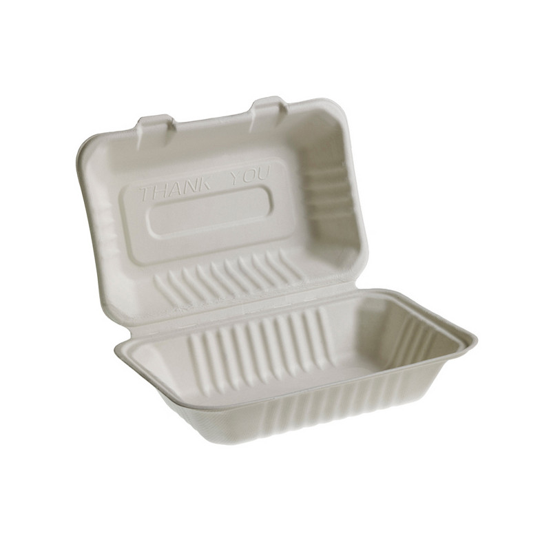 Vaschette realizzate in polpa di cellulosa estratta da bamboo e canna da zucchero. Colore: bianco. Adatto a cibi caldi e freddi,solidi e liquidi;per i cibi caldi evitare il contatto prolungato (max 30 min a 70°C). Forno tradizionale:max10min a 100°C. Forno a microonde:max3min a 700W. Biodegradabile e compostabile secondo norma EN13432 • Sandwich box 25,1x16,2x8h cm • Peso unitario 30gr