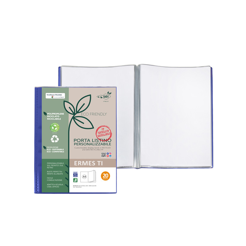 >Cancelleria>Portalistini>Portalistini personalizzabile Ermes TI - 22 x 30 cm - PP riciclato - 20 buste - blu - Sei Rota