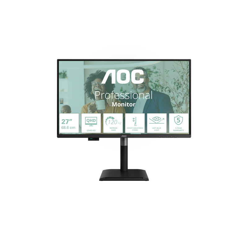 AOC Q27P4CV. Dimensioni diagonale schermo: 68,6 cm (27"), Risoluzione del display: 2560 x 1440 Pixel, Tipologia HD: Quad HD, Tecnologia display: LED, Tempo di risposta: 4 ms, Rapporto d'aspetto nativo: 16:9, Angolo di visualizzazione (orizzontale): 178°, Angolo di visualizzazione (verticale): 178°. Altoparlanti incorporati. Hub USB integrato, Versione dell'hub USB: 2.0 / 3.2 Gen 1 (3.1 Gen 1). Montaggio standard VESA, Regolazione altezza. Colore del prodotto: Nero