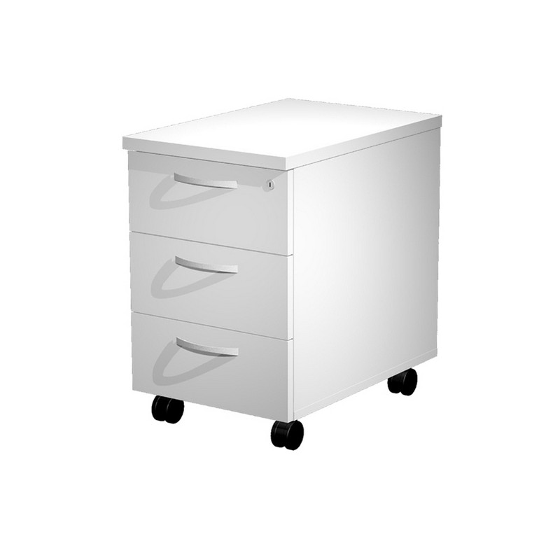 Cassettiera a 3 cassetti con chiusura centralizzata. Interno cassetti in metallo. Guide metalliche con fermo a fine corsa. Fornita montata. Dimensioni: L39,6 x P60 x H60 cm.