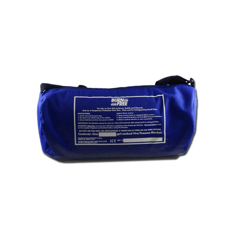 Resistente al fuoco. Assicura una protezione fisica immediata dalle fiamme. Rinfresca e inumidisce le bruciature. Fornita in borsa da trasporto con chiusura a strappo.