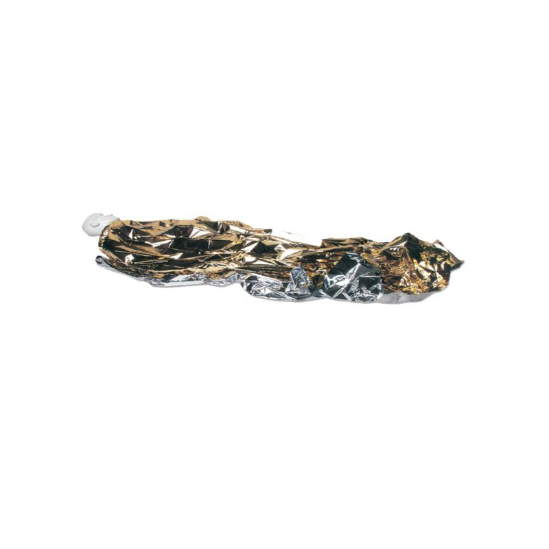 Adatta a proteggere sia dal freddo che dal caldo. L’interno argentato trattiene il calore del corpo, l’esterno dorato riflette i raggi solari