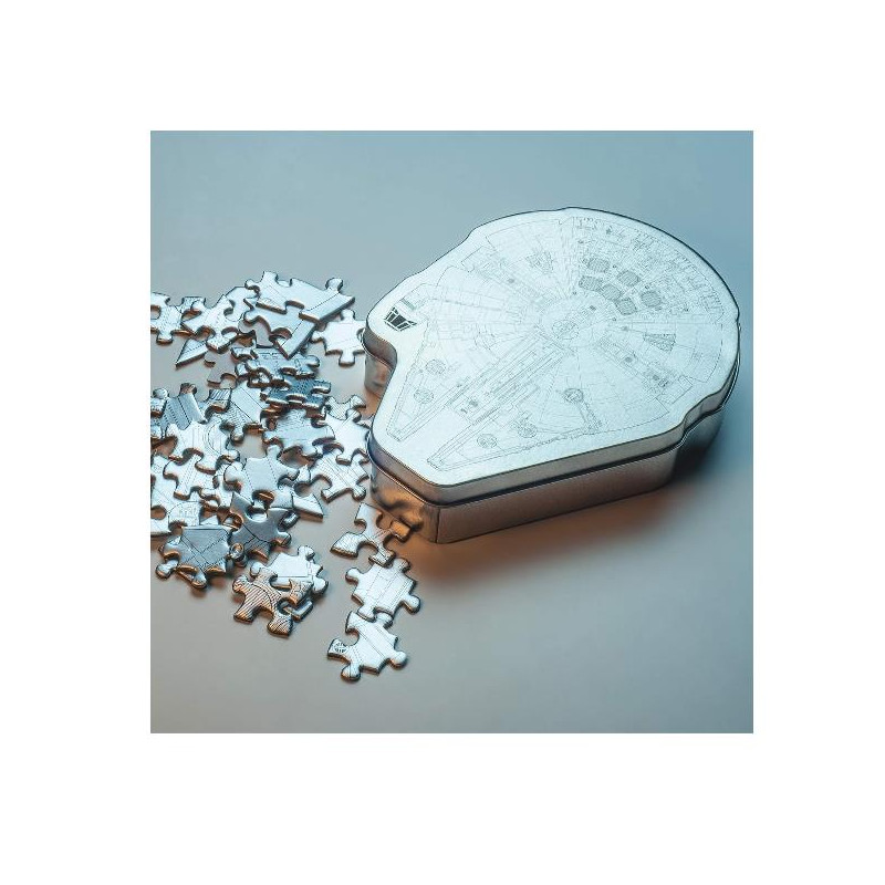 Un bellissimo puzzle da 201 pezzi che forma l'astronave iconica di Han Solo in nero e argento. Un puzzle divertente che potrà essere riposto nella scatola metallica decorata con la medesima navicella spaziale.