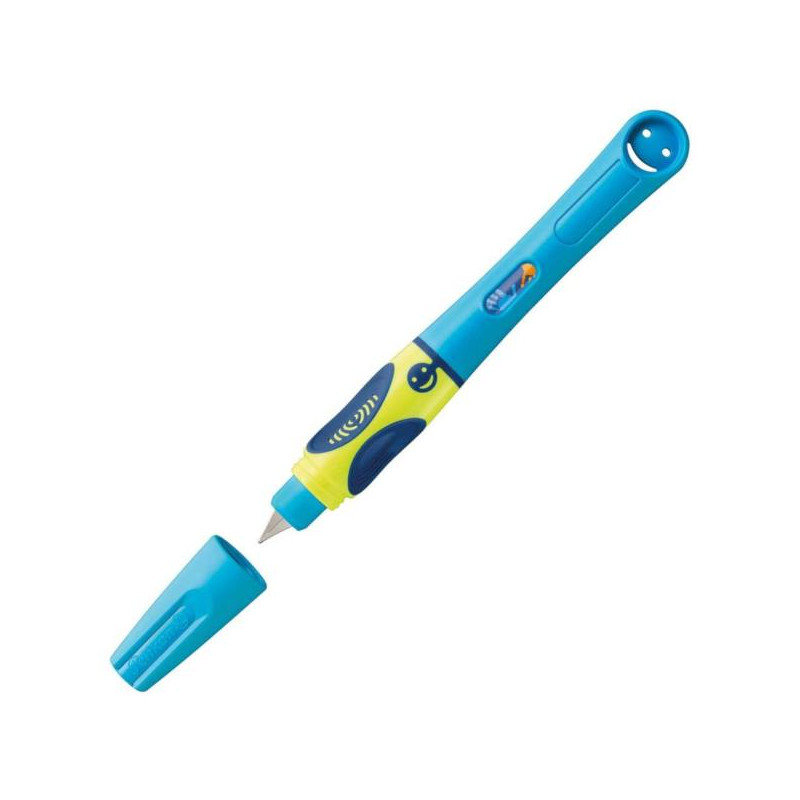 Scatola pieghevole con 1 penna stilografica e 1 grande cartuccia d'inchiostro in blu reale e targhetta per il nome. Con Griffix è divertente imparare a scrivere. Sistema di apprendimento a 4 livelli. Impugnatura ergonomica uniforme su tutti e 4 i livelli Griffix. Progettato con insegnanti e scienziati. Secondo le ultime conoscenze della grafomotoria. Imparare a scrivere in modo semplice e senza sforzo. La penna stilografica è il quarto livello del sistema di scrittura Griffix a 4 livelli, la classe reale per imparare a scrivere. In questo modo i bambini imparano a scrivere in modo corretto e ottimizzano i movimenti di scrittura fluidi. La molla in acciaio inox resistente alla pressione per principianti di scrittura scivola facilmente sulla carta e lascia una bella scritta. Grazie al concetto di impugnatura unificata dei singoli strumenti di scrittura, il bambino non deve più cambiare la posizione della mano da un livello all'altro. Non è quindi necessario intervenire tra i diversi livelli di apprendimento. La grande finestra di visualizzazione dell'inchiostro offre un controllo ottimale del livello di inchiostro. Griffix supporta la mano dei bambini in modo ottimale durante tutto il processo di apprendimento della scrittura, fin dall'inizio.