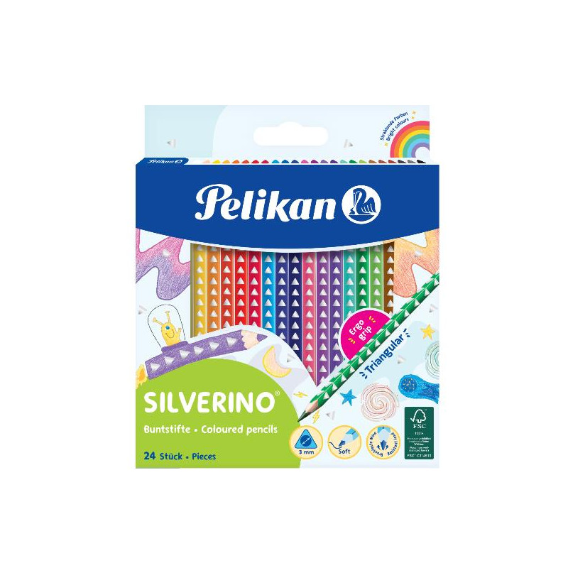 Le matite sono strumenti importanti a scuola. Per imparare a scrivere, per le lezioni di geometria e per i disegni artistici e tecnici. Le matite Pelikan SILVERINO® sono ergonomiche, divertenti, funzionali. Certificate FSC™ 100%.