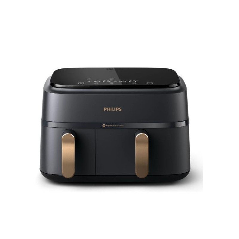 Airfryer Philips con doppio cestello Serie 3000 consente la preparazione di due piatti caldi e pronti contemporaneamente. Gusta una cucina sana e deliziosa: hai a disposizione un cestello grande per realizzare primi piatti in grandi quantità e uno piccolo per contorni o pasti per una persona.