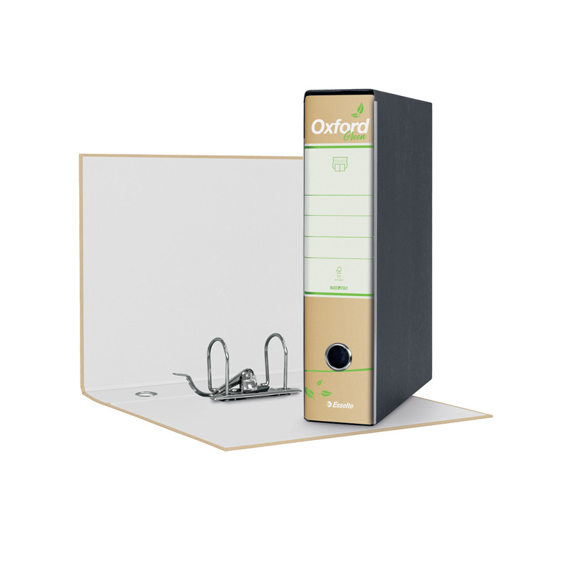 Il nuovo registratore Oxford Green rappresenta il simbolo dell’elevata qualità della produzione Esselte in una nuova veste sostenibile, certificata FSC. Il nuovo motivo floreale, contraddistinto da un'accesa tonalità di verde, dona un tocco di freschezza e novità, rendendo questo classico senza tempo ancora più unico e particolare. La resistente struttura in cartone da 2 mm rivestita da una carta stampata 100% riciclata conferisce una finitura premium ad un prodotto adatto per qualsiasi tipo di archiviazione, anche le più esigenti.