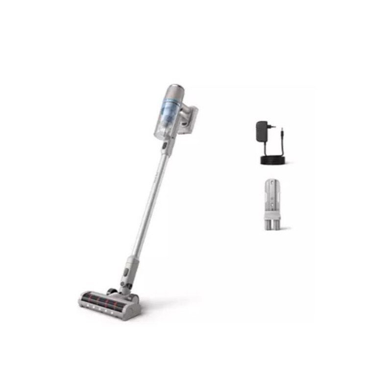 Rimuove polvere e sporcizia • PowerCyclone 7 rimuove più polvere con meno utilizzo della batteria. • La batteria a lunga durata ha un'autonomia fino a 40 minuti¹. • Sistema di filtraggio a 3 stadi per bloccare la polvere catturata. Pulisce con precisione • La spazzola con LED espone la polvere nascosta, guidando ogni movimento. • La spazzola di precisione scorre a una distanza di 1 mm dalla parete. Semplicità d'uso • Batteria rimovibile da 21,6 V per una pulizia prolungata. • Si trasforma in un'aspirapolvere portatile per la pulizia di superfici diverse
