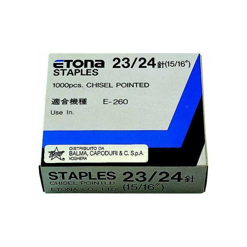 Per il rifornimento ed il buon funzionamento della tua cucitrice alti spessori 'ETONA' si consiglia l'uso dei punti in acciaio originali 'ETONA'.