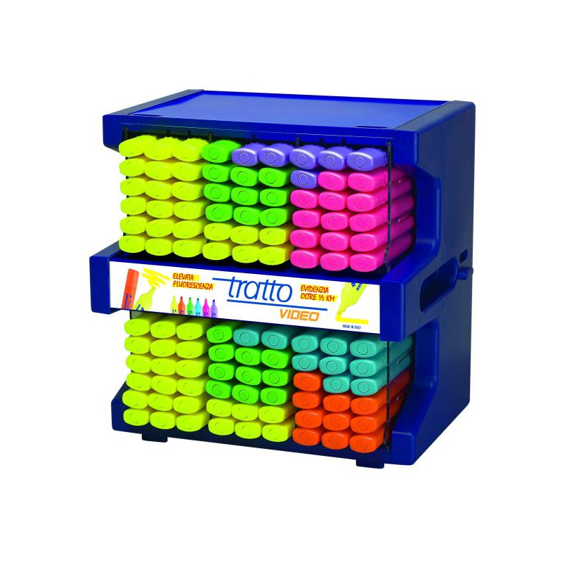 Evidenziatore punta scalpello con inchiostro universale a base d'cqua. Inchiostro ad elevata fluorescenza che ascuga rapidamente. Storico prodotto della linea Tratto adatto sia per un uso scolastico che professionale. Ideale per carta normale, autoricalcante da fotocopie e fax. Disponibile in 6 varianti colori; giallo, verde, arancione, rosa, azzurro e lilla.
