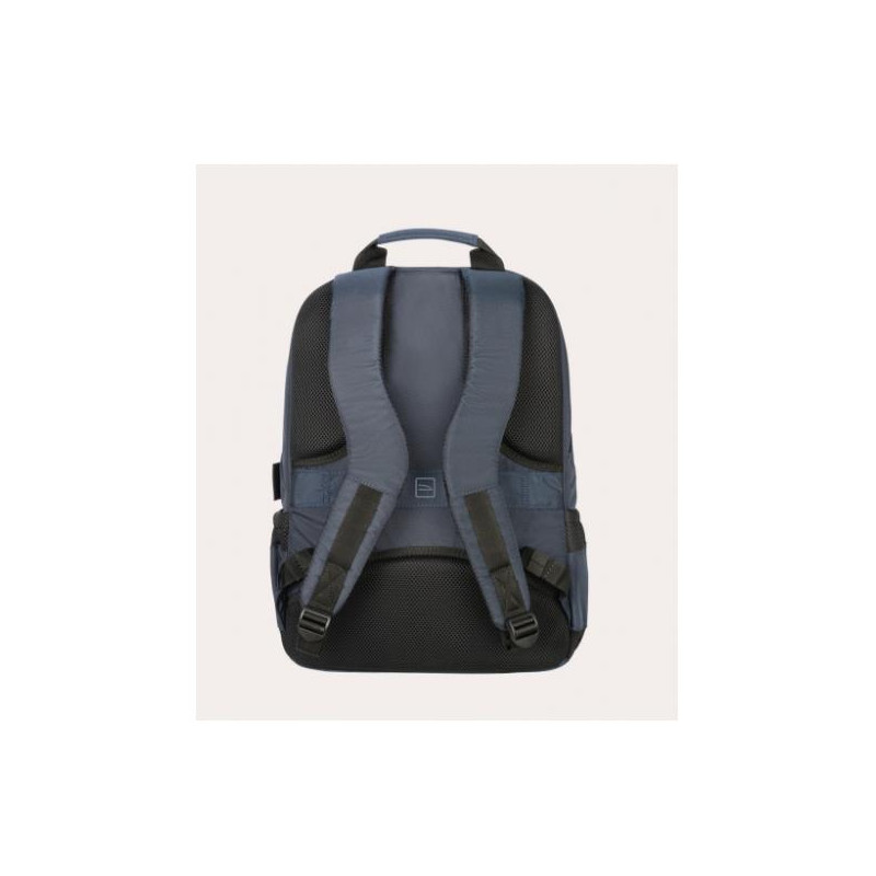 Zaino per laptop 15.6' e MacBook Pro 16' Zaino sportivo e da lavoro (business), realizzato in tessuto ottenuto in plastica riciclata. Tasca esterna frontale organizzata. Doppia tasca interna per device. Ampio vano interno. Tasca esterna frontale. Tasche laterali per borraccia o bottiglia e ombrello. Schienale e spallacci ergonomici, regolabili e imbottiti provvisti di fascia per il trolley. ?