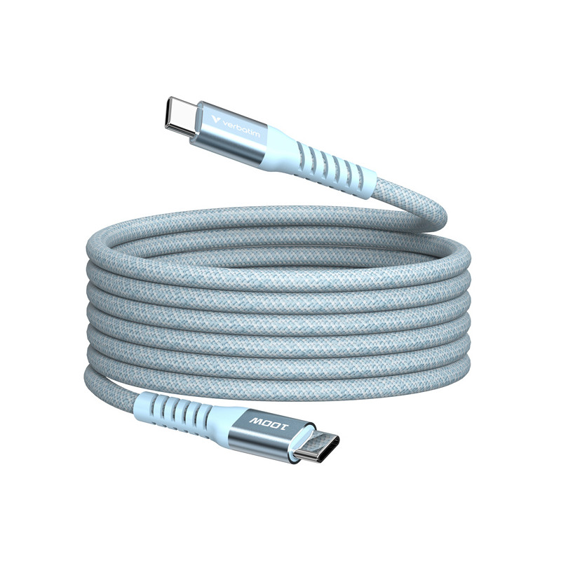 Verbatim Cavo Magnetico Sync <(>&<)>Charge USB-C to USB-C 100W 120 cm_Blu Erogazione di potenza elevata: supporta fino a 100 W di ricarica rapida e 480 Mbps di trasferimento dati Ampia compatibilità: adatto a una vasta gamma di dispositivi USB-C, dai laptop agli smartphone Design magnetico: rimane arrotolato e senza grovigli per un facile utilizzo e stoccaggio Costruzione robusta: esterno intrecciato e nucleo in rame spesso per una maggiore durata Supporta PD 3.0 e QC 3.0: Pienamente compatibile con i moderni protocolli di ricarica. Compatto e portatile: Perfetto per i viaggi o per l'uso in movimento Interfacce: Connettore USB-C (maschio). Lunghezza cavo: 120 cm. Diametro cavo: 4,6 mm. Materiale: Alluminio, nylon, TPE. Velocità di trasferimento dati: fino a 480Mbps. Potenza in uscita: max. 100W. Supportato: PD 3.0, QC 3.0